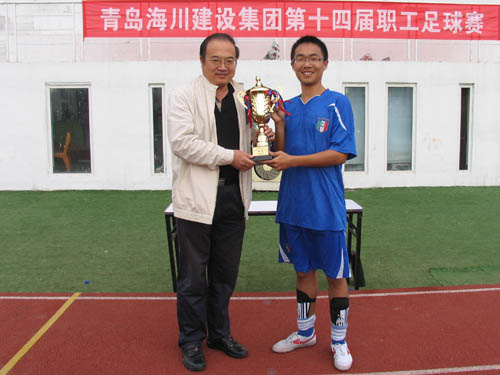 繼10月9日分組預賽之后,17日(星期天)上午,海川集團“海川建設杯”第14屆職工足球賽在市北區(qū)中聯(lián)運動公園足球場進行了半決賽和決賽。吳鑫董事長和欒恒忠副總裁蒞臨球場為球員鼓勁,并在閉幕式上分別為前三名球隊頒獎。決賽是在三分公司足球隊和物流分公司足球隊之間進行的,這是一場精彩的進球大戰(zhàn),最終三分公司以5:4的比分險勝物流分公司隊,獲得冠軍;物流分公司獲得亞軍;海川總部以4:2戰(zhàn)勝二分公司隊獲得第三名。
