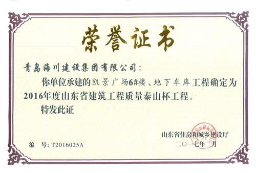 海川集團榮膺2016年度全國優(yōu)秀施工企業(yè)