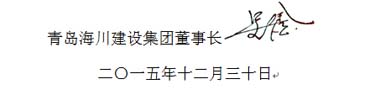 在2016年即將到來(lái)之際,我謹(jǐn)代表青島海川建設(shè)集團(tuán),向所有關(guān)心和支持我們企業(yè)發(fā)展的各級(jí)領(lǐng)導(dǎo)、各界朋友致以誠(chéng)摯的新年祝賀!同時(shí)向一年來(lái)努力工作、忘我奉獻(xiàn)的全體股東和廣大員工致以新年祝福!向奮戰(zhàn)在海外和埠外項(xiàng)目上的全體員工及其家屬致以親切的問(wèn)候和衷心地感謝!
