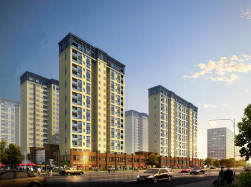 星光上院工程位于青島市城陽區(qū)和陽路與泰城路交接處,由青島明輝置業(yè)有限公司開發(fā)、中煤科工集團重慶設計研究院有限公司設計、青島光華工程監(jiān)理有限公司監(jiān)理、青島海川建設集團有限公司承建,工程總面積46179.7㎡,其中7#8#樓面積20505.28㎡,分為兩層商業(yè)網(wǎng)點和十六層住宅,總戶數(shù)192戶,商業(yè)網(wǎng)點32間,入住率達到100%。工程基礎形式為筏板基礎,結構形式為框架剪力墻結構,抗震設防烈度6度,抗震等級4級,防水等級二級。建筑總長度142m、寬度15m、高度53m。工程于2011年11月15日開工,2014年1月10日竣工。
