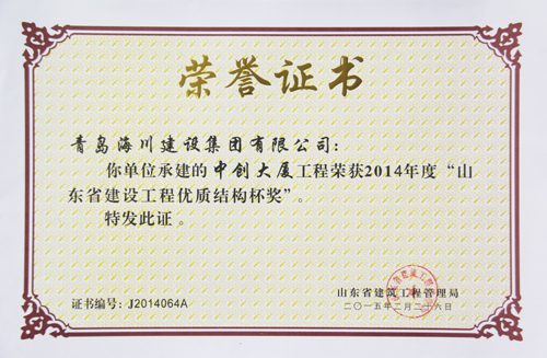 中創(chuàng)大廈優(yōu)質(zhì)結(jié)構(gòu)杯獎